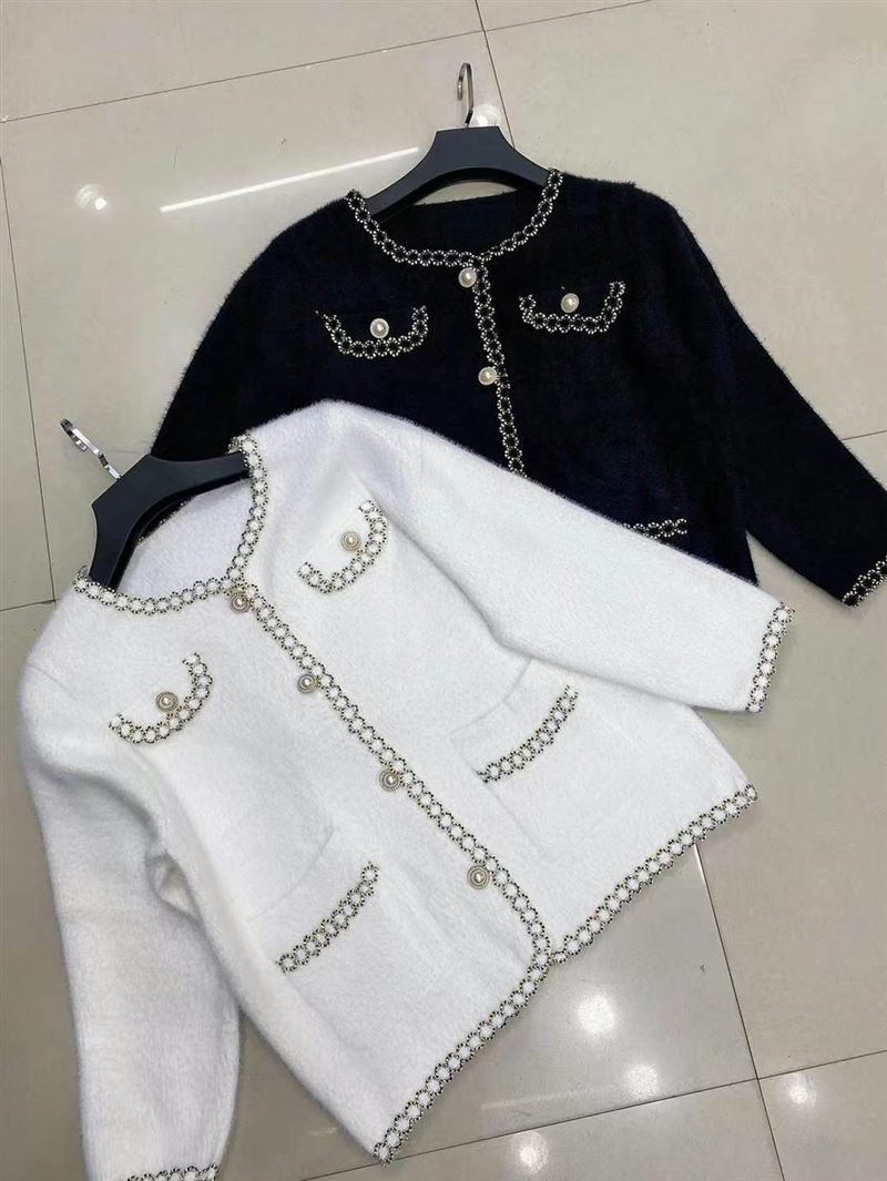 2000件全清28.8元,50件起29.9元,黑白色可选,均码80-140斤,小香风水貂绒外套女春秋韩版气质名媛法式短款针织毛衣女开衫潮