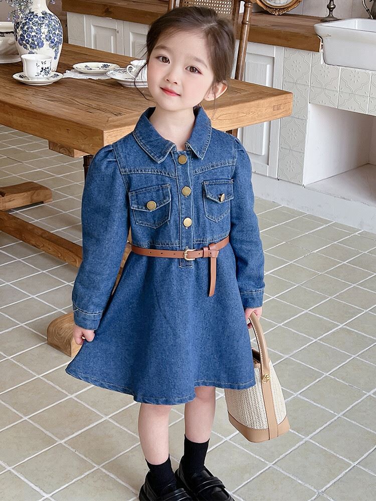 女童春秋装牛仔裙2024新款儿童女宝宝洋气时髦春秋款韩版修身连衣