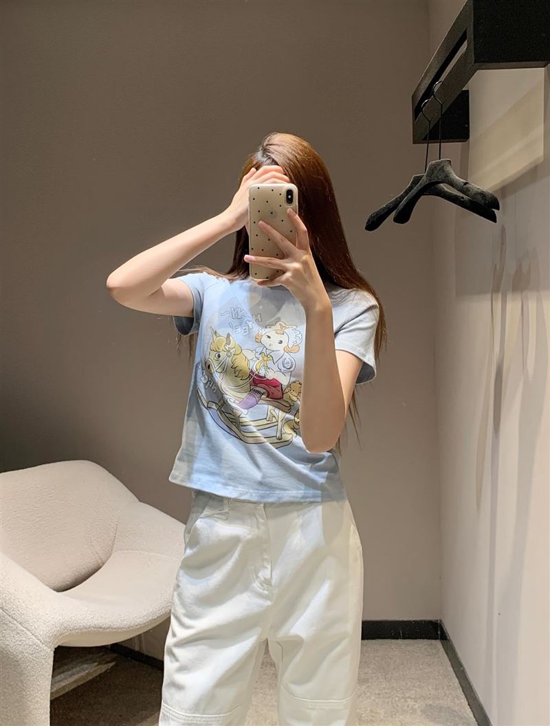 Open yy 25Ss春夏新款 卡通印花圆领短袖T恤丨⚠独家高版出品!清爽又时髦的tee也太好看啦🤩独特的可爱卡通印花设计!少女心爆棚💗真的很难不爱呀 修身短款的版型 上身露出性感的小蛮腰 搭配高腰阔腿裤或短裙 简直美炸了!可甜可盐~定制面料 质感超级舒适!这样的T恤就是人手一件的存在!现货发售S/M/L