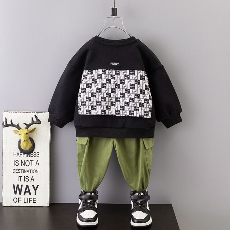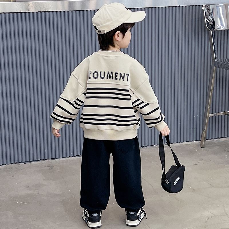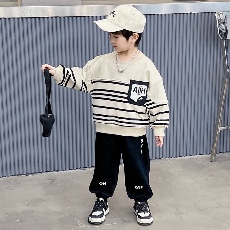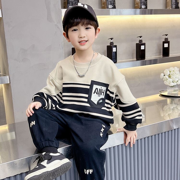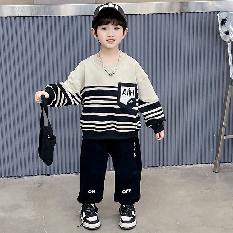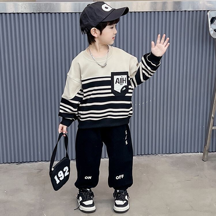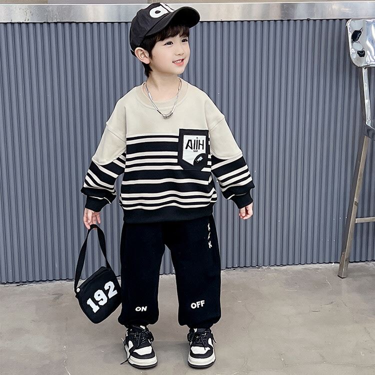 男童2024新款套装春秋款儿童春装条纹卫衣宝宝春款酷帅气男孩套装
