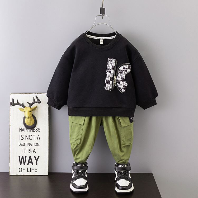 2024男童K拉链套装卫衣套装长袖春秋款儿童运动休闲时髦两件套