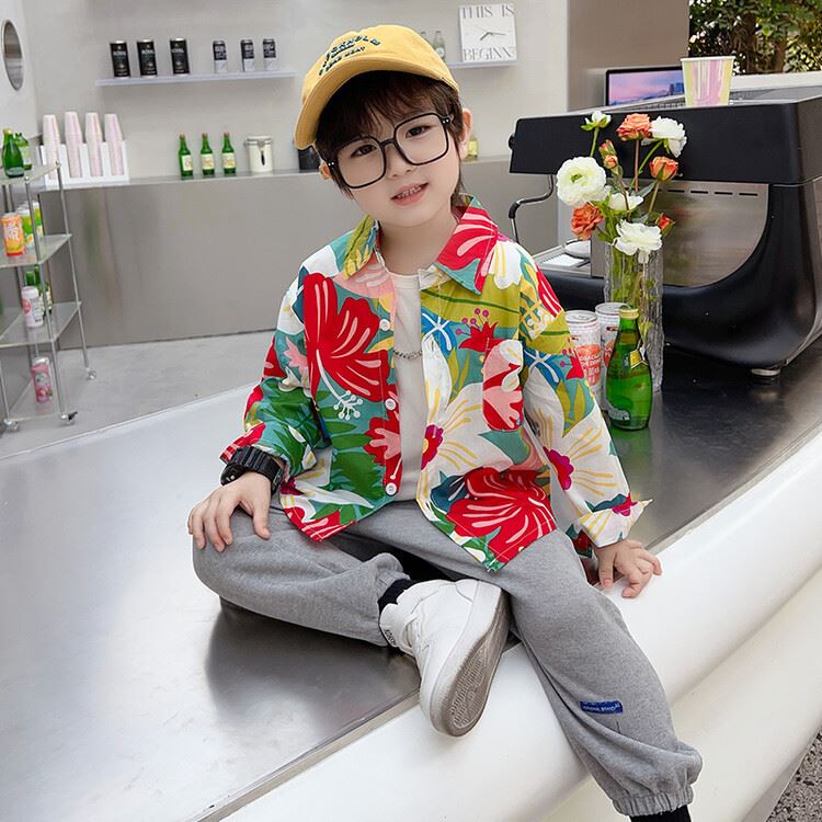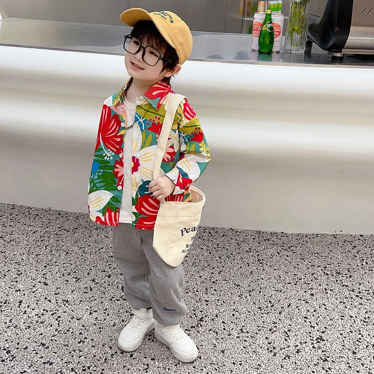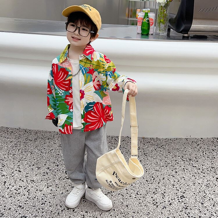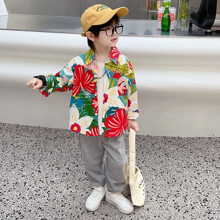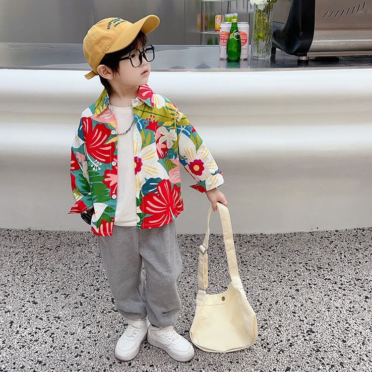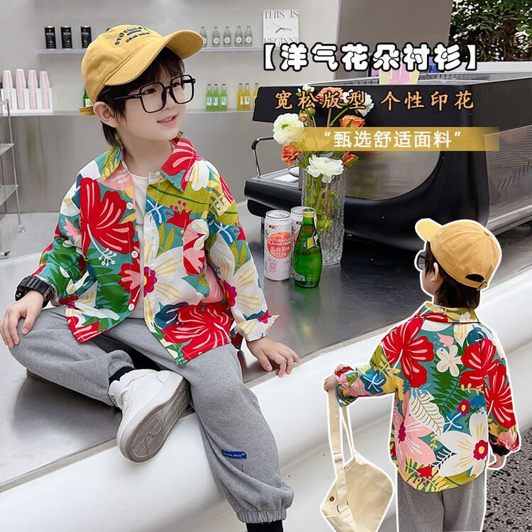男童花衬衫长袖春装2024新款痞帅衬衣宝宝上衣男孩春秋潮帅气衬衫
