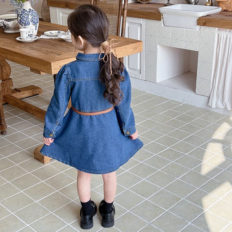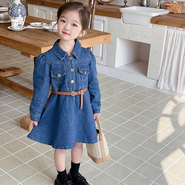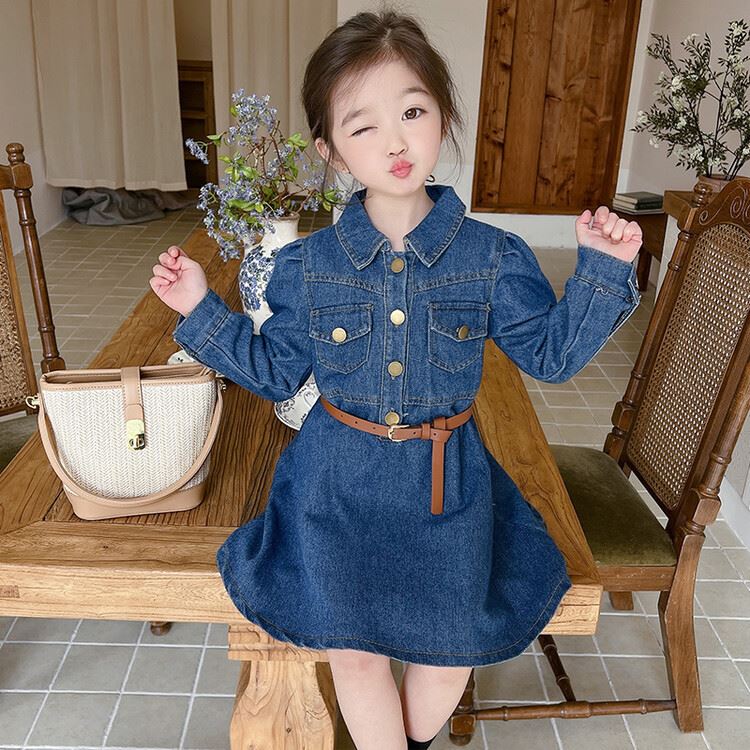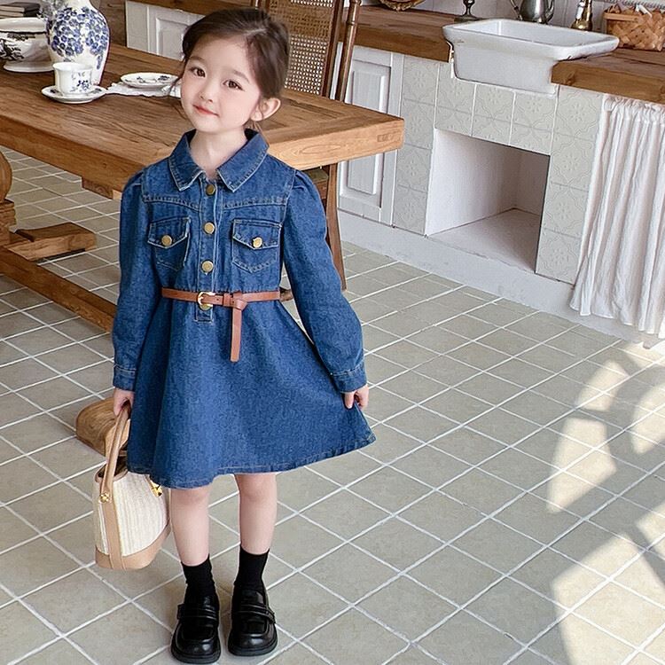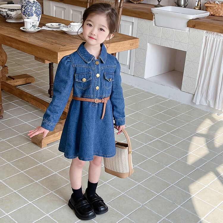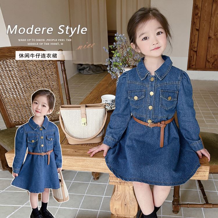 女童春秋装牛仔裙2024新款儿童女宝宝洋气时髦春秋款韩版修身连衣
